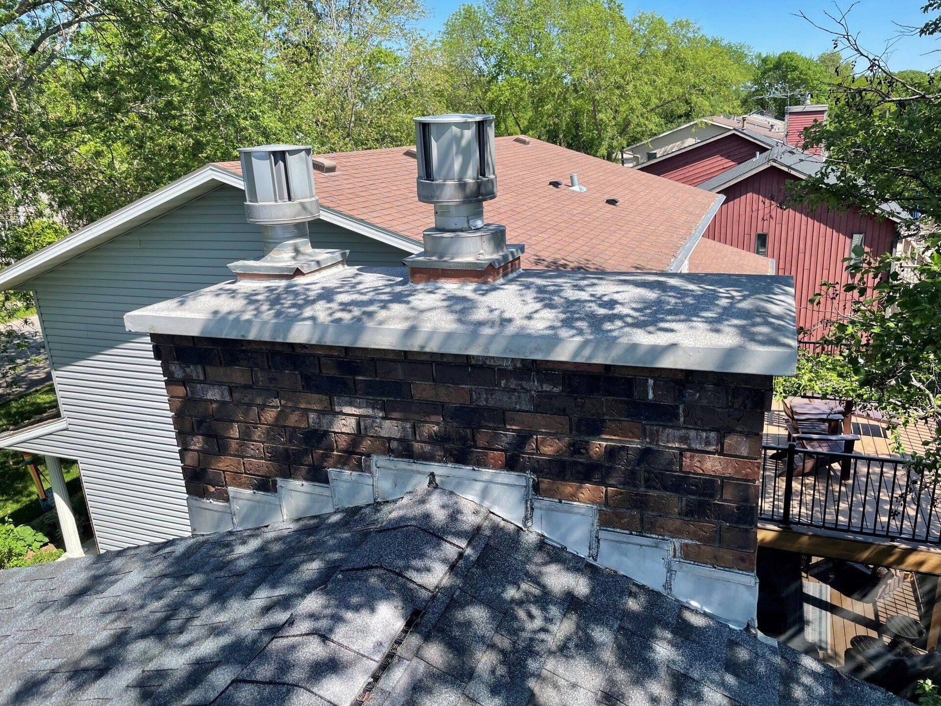 - Flashing — Chimney flashing acts as a barrier between the chimney and roof. If this is compromised, water will leak into your house. Dano's technicians can repair or replace flashing to industry standards to keep your system dry.